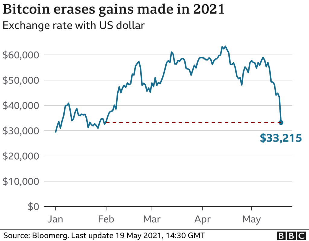 It follows falls in Bitcoin of over 10% last week after carmaker Tesla said it would no longer accept the currency.