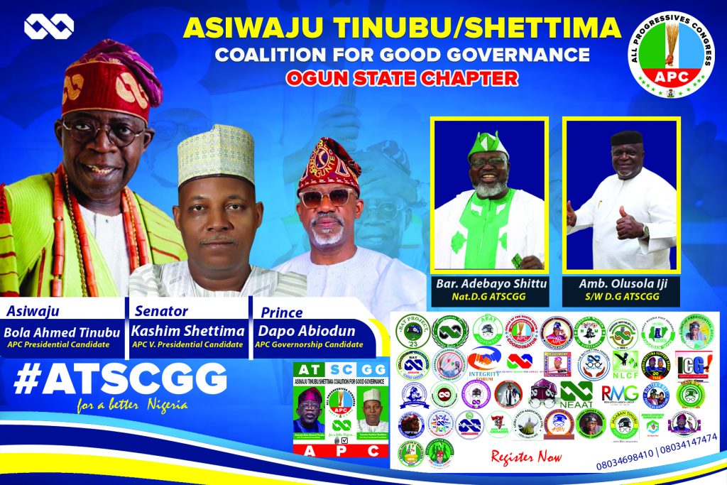 Ogun State ATSCGG have in their team, responsible support groups who have proven to be loyal to our dear party APC and all our candidates from top to bottom, the list of registered support groups in Ogun State ATSCGG includes but not limited to :